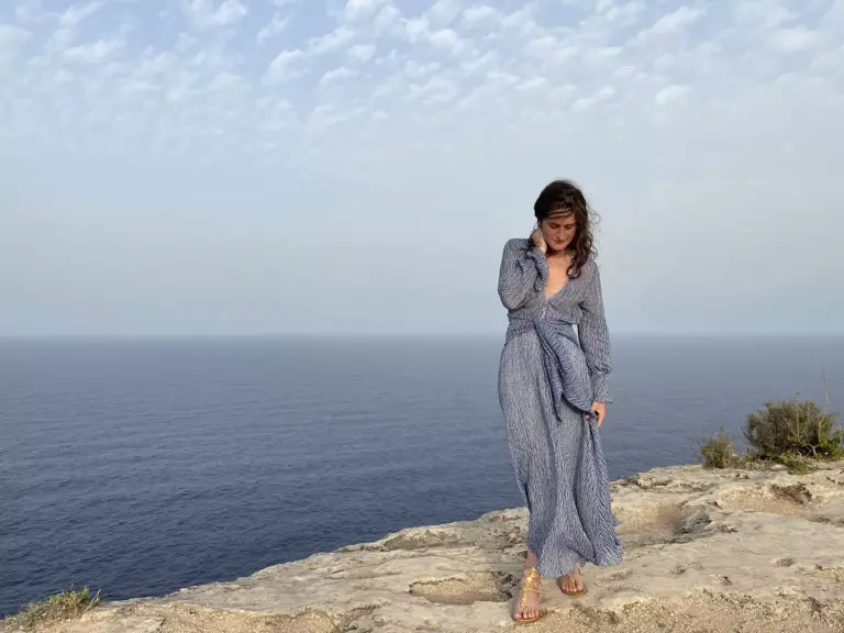 The Sea Dress draws inspiration from the color of the sea, featuring a textured fabric made from Turkish linen and cotton. The lightweight, semi-sheer fabric ensures a flowing and comfortable fit. The tie belt at the waist and the deep…