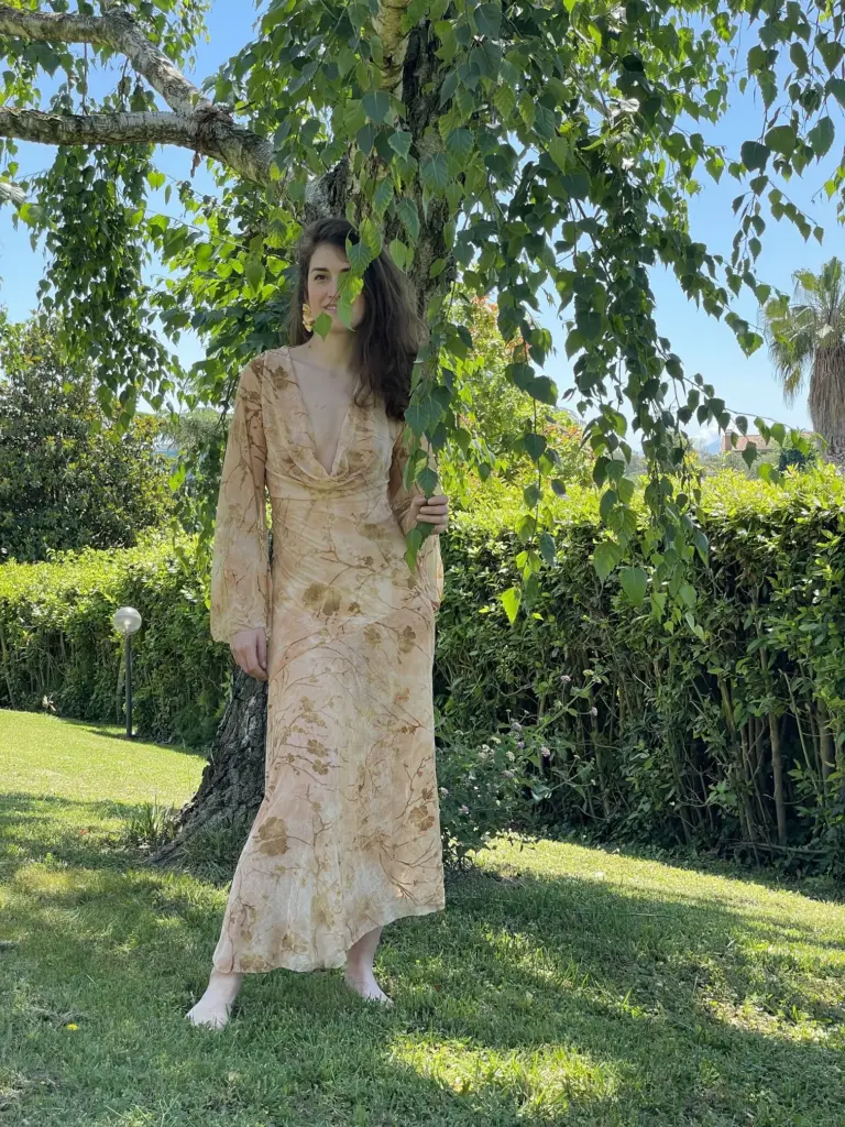 Creating an illusion of instant ethereal beauty and encapsulating the romantic mood of the season, this flower dress, crafted from stunning lightweight 100% silk gold devoré, is symbolic of grace. The dress celebrates and accentuates the female figure, flattering the…